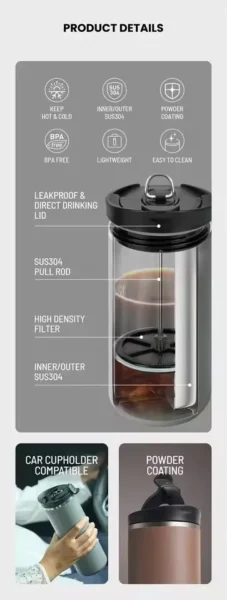 Termo con Prensa Francesa – Prepara Café Fresco en Cualquier Lugar